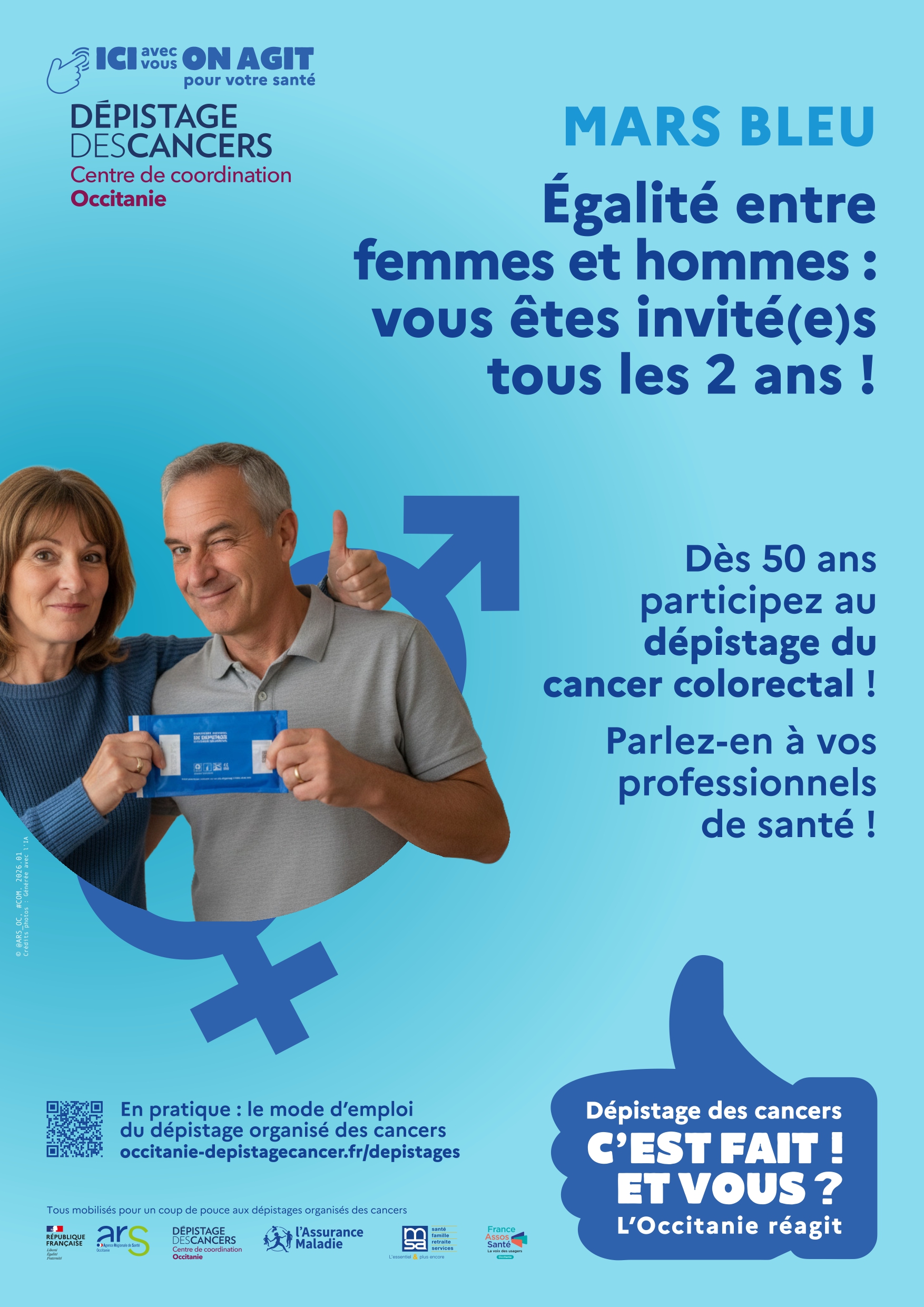 Dans le cadre de #Mars bleu 2026, le Centre Régional de Coordination des Dépistages des Cancers Occitanie s'associe à 10 Centres régionaux de coordination des dépistages des cancers (CRCDC) de France pour organiser un défi connecté pour promouvoir le dépistage organisé du cancer colorectal !